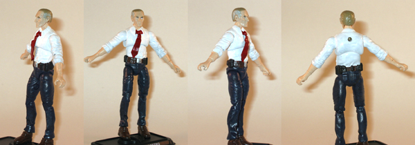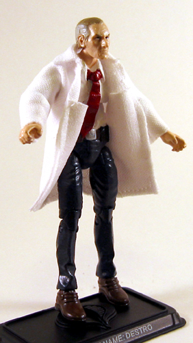 This version of Dr. Venom was my original idea for Lance Sputnik's 2007 Custom Celebration Two-Week Challenge. At the time, I couldn't figure out how to make the Tarkin head (with the larger neck hole) fit on the 25th Duke neck post. By the time the '08 Challenge rolled around, I had become familiar with Greenstuff, and decided that would work to complete my original idea. I have since learned about the 'hot glue' method (thanks everyone!). Regardless, I decided to dust off my original idea and try to complete it for the new round. It's a very simple custom, and the most challenging part was just trying to match skin tones. I utilized another method of trying to paint the head, except for the eyes (again, thanks for the suggestions!) and even though I wasn't completely happy with the results, I feel I did an adequate job.