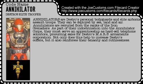 As one of Destro's elite, Annihilators are capable of deploying from anywhere to wherever they want to go, just with their heli-packs. Regardless what others say about the Annihilators, I think that they are awesome.