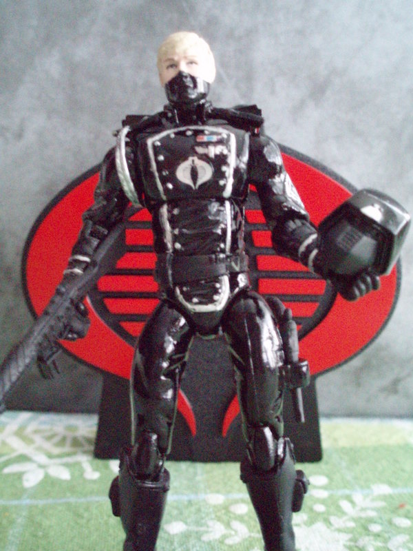 The Crimson Shadow Guard is an elite sub-group of the Crimson Guard and is made up of the most ruthless and feared of the bunch. They are experts in sabotage and espionage and do there missions and disappear without a trace into the shadows of the night. I can't believe Hasbro has yet to release a 25th Shadow Guard, they have 7 different versions of the Crimson Guard figure so far, easy paint retooling and they would have the Crimson Shadow Guard! I used Tamiya X-1 (gloss black) & Tamiya X-11 (chrome silver), the silver Cobra chest insignia is from cobrastickers dot com. The last picture shows the 3 Crimson Shadow Guards I did. Along with the 3 Shadows are a Crimson Officer & Crimson Squad Leader that I also did from the "Fred series" figures.