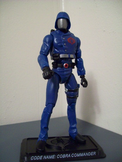 The original RAH Cobra Commander had the same arms as the RAH Cobra Officer. I wanted to make an updated version of that. The dark blue of the Ultimate Battle Pack CC matches the Cobra Officer/Air Trooper/ perfectly. Just had to boil and pop and swap out the lower arms. I then painted the neck black, since the light blue just looked out of place considering the rest of the figures deco.