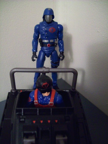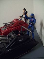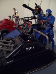 As much as I like this figure I got bored of taking pictures of him by himself, so I decided to do some action scenes with some vehicles I'm working on. I would have never gotten the idea to make the Armadillo into a Cobra Command Vehicle if I hadn't seen Canprime's Mini-Cat on here. That is a freakin' awesome idea. Thank you for doing that!!!