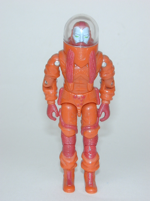 When Olmec did their G.I.Joe-based Bronze Bombers line, I worked most of them into my G.I.Joe collection with new names, but pretty much as is. But I had a little trouble figuring a way to work in the recolored Secto-Vipers. Assuming this to be a new aquatic trooper, why would they all be African-Americans? So I decided to make an alteration, basing my idea on the character of Mara from the animated series. Although she was not amphibious, I decided that Dr. Mindbender had perfected the procedure. It still turns people's skin lavender purple, but they can exist underwater as well as in the air. They still wear peotective gear, though, because they have to alternate between air and water fairly regularly or they start to get deprived of one environment. The suit can provide either a water or air supply as needed. They're Cobra's AQUA-VIPERS, and they make Eels and Undertows look like landlubbers! (I just wish I had more than two of them...)
