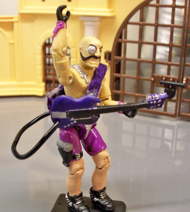 It is unclear what inspired the creation of Dr Axebender. It is thought that perhaps the good doctor desired to exercise his artistic side, or perhaps live out a forgotten childhood fantasy. At any rate, a chance encounter in a Sydney pub led to the creation of one of the more endearing members of Operation:Mindcrime - Dr Axebender. Combining the DNA with AC/DC's Angus Young resulted in a spitfire of rock n roll energy, sneering and duck walking through the lab, often just riffing over and over. And over. He has a tendency to remove his clothes in impromptu stripteases, often to the amusement of the other clones.