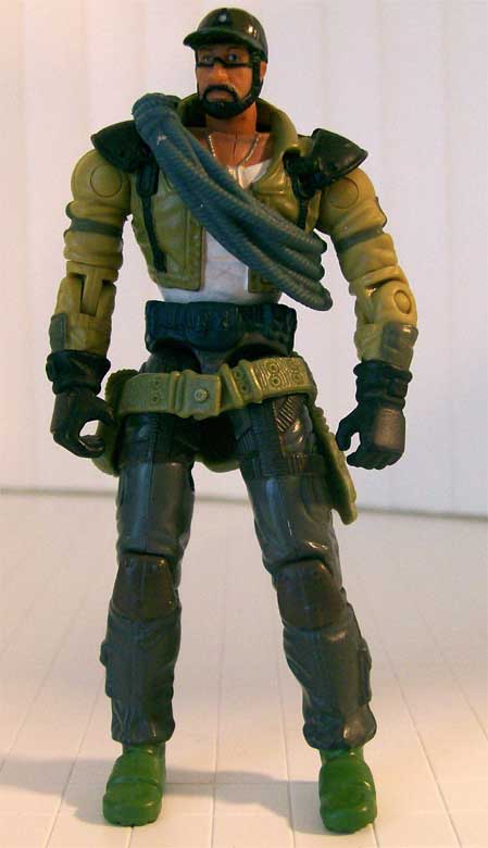 Sculpted goggles and hat crest. Slight mod to thigh joints to accept lower legs. Torso painted to match arms and head flesh. I like how this turned out but would like a backpack to hold his gear. The ARAH version is to bulky. The rope also interferes with the backpack plugs too.