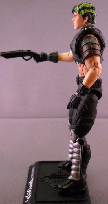 After making Zandar, Zarana, Ninja Force Zartan and Monkeywrench, it was time that Thrasher joined the team. I was never fond of the original weapon, a lacrosse stick and ball? WTF? I gave Thrasher a sawed off shotgun which fits better with the Mad Max theme. The shoulder spikes were elbow pads on Buzzer and Ripper arms. I plan on modifying a Thundermachine to fit the taller figure.