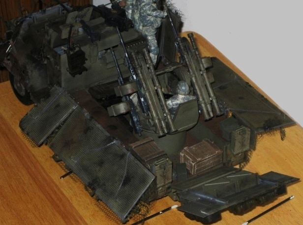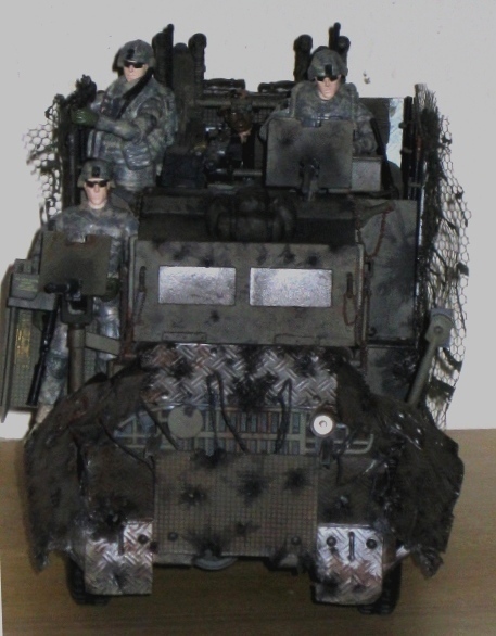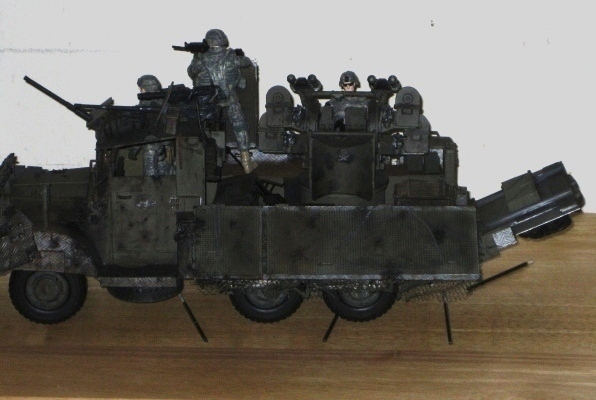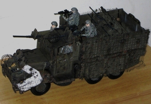 Build-a-Rama: fuel tanks, camo netting, .50 cal crates, .50 ammo, and stowage crate attached to rear of truck.