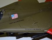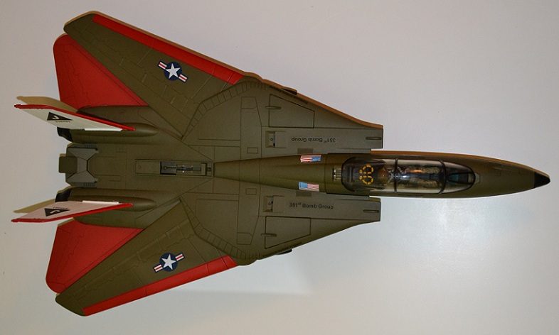 I tried to put as much information and meaning into the decals and paint as possible. The color scheme is classic olive drab and red to match the B-17's early in the war prior to them just leaving them shiny aluminum. He was in the 351st Bomb Group, 509th Bomb Squadron in the United States Army Air Force flying out of a base in Polebrook, England. His group flew the symbol Triangle J on the tail fin. The plane he flew in most missions was named the "Myassisdraggin". I took some liberty with the tail art as we never actually saw a picture of the actual nose art on the B-17, but we had a description and I got as close as I could. The numbers on the tail fin are acurate and would have been displayed just like that on the real B-17. The symbol on the side of the cockpit is the actual group symbol for the 509th and my grandfather's nickname in WWII was "Jeep" so I incorporated that into his name as the pilot name under the cockpit.