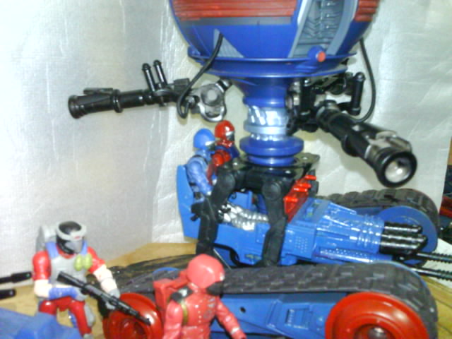 The Cobra Sphere Tank rotates 360 degrees to attack multiple targets simultaneously. Manned by the lone crew, the triple cannon contains the main plasma cannon with the driver and gunner seated below the sphere. Destroying the lower tank will knock the triple cannons out of action and the vehicle is completely shut down and is unsalvageable. The crew in the sphere can survive unharmed in the reinforced crew compartment.