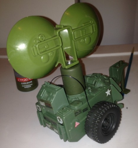 When I was working on my quonset hut playset I needed a radar outside to mimic a scene from the comic. I couldn't find my motorized Action Pack Radar Station and was about to use the Coastal Defender in its place when I got the opportunity to dive into nova's vehicle parts bins.