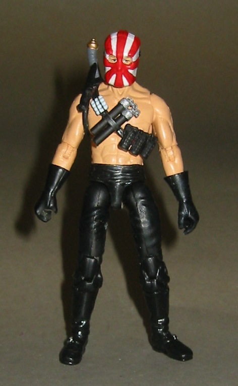 I really wanted to give him both a removable mask and the ability to swap his ponytail for loose hair. I managed it, but the long hair needs more work before I want to show it to anyone. Banzai is one of those tail end characters that's never really been used. Part of that is the color scheme, so I ditched the neon purple. No idea what a Rising Sun Ninja is, so I tried to give that some basis in reality by painting the mask the way I did. Moving the sheath for his sword to his back was inspired both by his card art and practicality. The setup of the original figure would make it totally impossible for him to draw his sword (or knife, or whatever that was on his chest.
