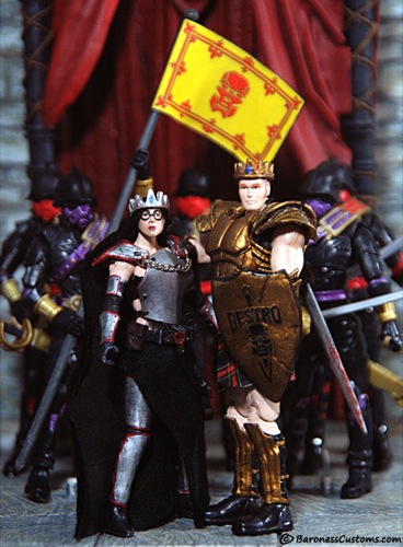 As Destro's long-time on-again-off-again lover, Baroness Anastasia had not always been totally honest with him or even herself regarding her feelings for him. However, in her heart she never truly wavered in her devotion. This was made particularly apparent to her during his quest to regain his birthright and usurp the Scottish throne. She fully supported him in his quest for glory, becoming his royal consort (appropriate considering her lineage) as well as a larger part of his plans than even Destro himself had anticipated.