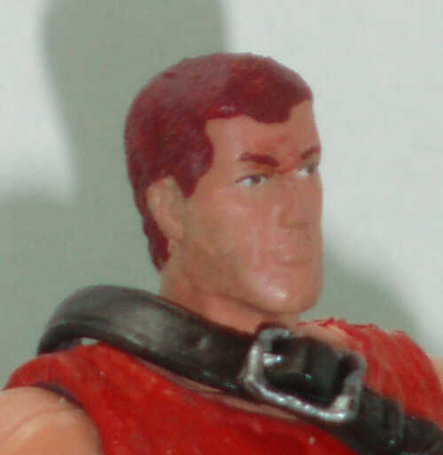 An "Ancient Discoveries: Warfare" program on Discovery channel gave me the fuel I needed to create Blowtorch, by suggesting the science and skills to create handheld flamethrowers was possible. Having decided I couldn't get enough Duke out of the head to be Snake Eyes, I shaved down his chin and nose a little more, and smoothed out much of the scarring.