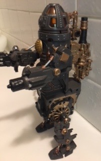 After I built Blowtorch, I decided he needed a vehicle to go with him. The Iron Dragon is a concept that I wanted to do for a long time. Basically a steampunk robot/ vehicle that can be manually operated and has flamethrower technology built in. This was a lot of fun. project to do and I used ALOT of fodder for this one. But the build came together nice and has multiple moving parts and fits in great with the steampunk universe.