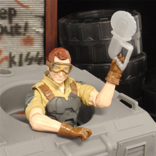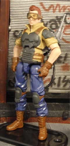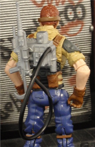 I was going back to my pre-rule idea for Heavy Metal #2.... but I started fiddling with parts, specifically the recently cracked torso of Duke, Threw on Falcon's arms and the Thrasher head, and 'voila', Chopshop was born. The rest came easily... mostly due to the pompadour and that goofy smirk. Cut the zap laser cord in half to allow use of the hose, lets him actually hold it.