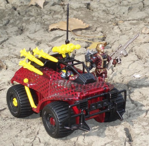 The Python Claw might not be much to look at, buts its job isn't to sit around and look pretty. Taking the remains of several 'Badgers' lost in Sierra Gordo, Cobra reverse engineered and enhanced the vehicle. Composing the frame of a lighter armor, and switching its missile launcher out for a double-barreled Minigun mount, the vehicles speed and maneuverability has been increased, making it ideal for Hit and Run attacks, and with Python Motor-vipers behind the wheel, this vehicle is a deadly addition to the Python Patrol's Arsenal.