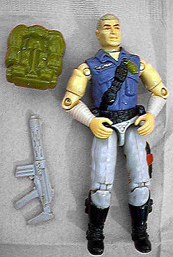 Well, here's my first ever G.I. Joe convertion, I like how it turned out, even if it looks too much like Duke. By using a head from one of the attrocious space comando figures, I was pretty sure it wouldn't have an instantly recognized face. Still, with the paint job on his shirt (I had to use a pre-85 body because the head doesn't have a swivel ball) it isn't automatically Duke, especially not with the only nice features of the Armadillo figure, his arms.