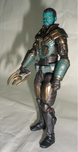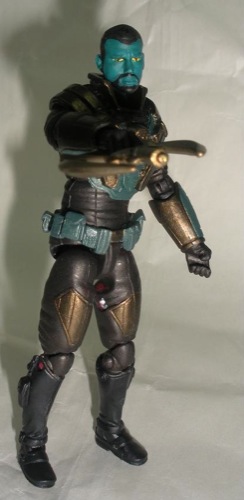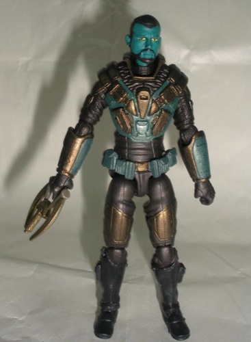 Darkon is based on the Super Joe villian. He was just a green colored version of Super Joe. No real background. So I figured to make one an tie him into the Intruders. I like the Tatum Duke head for use as the Adventure Team head. It is pretty close when adding a beard. I used the chest armour and belt from Action Attack Snake Eyes. I also made his weapon using the AA Snake Eyes weapon and adding a barrel from a Spytroops rifle. I had fun mixing up the colors and really like the way he turned out.