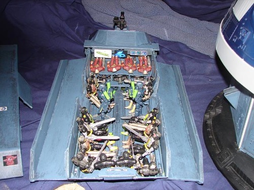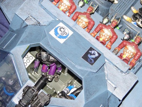 We received our first Rolling Thunder at the post office only to open it and find shattered plastic. :( Well....what to do....Customize it! After agreeing on the design; SilverWynter helped pick the decals, and after much help painting, applied them. The Dra'Goon is another B.O.S. design, for use in water or space. :) The Dra'Goon was largely designed by SilverWynter. I told her we were making a sub, she wanted an airplane.....so we compromised on a submersible spacecraft. :)