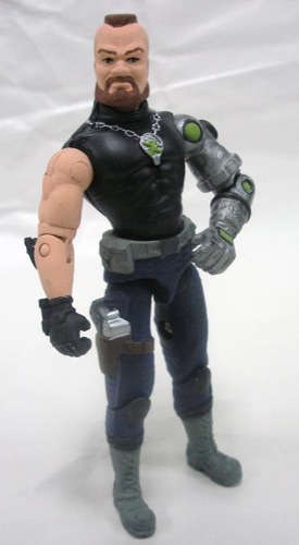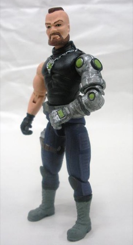 I figured since I was bringing in Mike Power, I should bring in another cyborg from the 12" line, so I made Dr.X here. I was going to go with the Gnagahyde head, but it looked too big on the Destro body. Zangiff worked out just as well. I painted the "X" logo over the Cobra chain on the torso and it looks pretty cool. The green was used on some of the early Dr. X figures that had a bright green "goo" in the chest and some lights and clear plastic arms/hands.