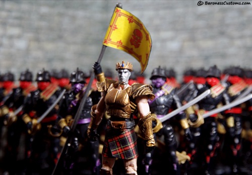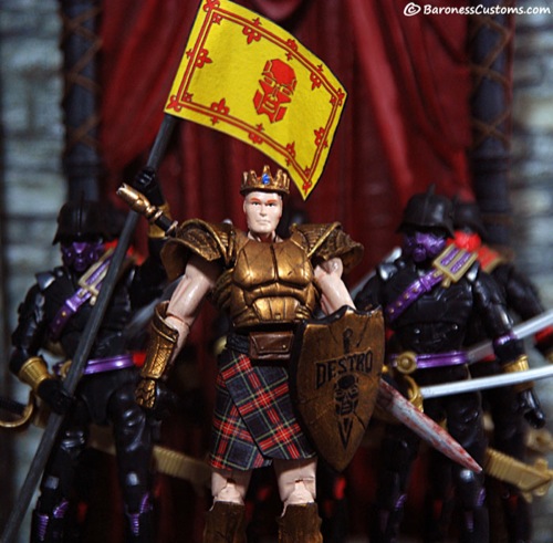 Soon after his midnight foray into Buckingham Palace, the charismatic Destro appeared unmasked on national television, winning over many in his beloved Scotland. Sporting his family's ancestral armour and claymore, he convinced those less swayed, leading the forces of both MARS and COBRA against those who did not stand for the truth. Within 3 short years, all but a few misguided souls followed him.
