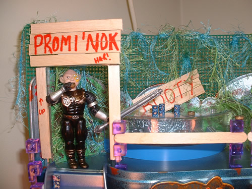 The Promi'nok is the center of illicit trade for the entire quadrant, and is presided over by Butthead. Butthead is a Furyhanki(tm) shopkeeper who keeps the stations 'Noks in line with a huge vibro sword and discounts on Grape Soda and Chocolate covered donuts.