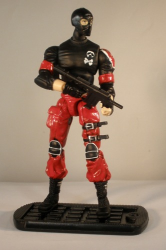 The RED SCARES are the physiological ware fare troops of the RED SHADOWS. They are experts in fear and manipulation and specialize in terrorizing large groups of people. They can whip up a stampede in just about any public area and use it to the Red Shadows tactical advantage. They can cause a diversion, take hostages, or just carry out attacks meant to destabilize their target. Red Scares can enter an public place with there well hidden compact weapon and move about undetected until they are ready to strike. Then when they launch there attack they don black masks and bring there weapons to the ready and begin their assault.