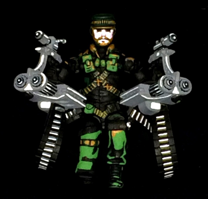 I did have a complete Rock n Roll from 1989 or 1991, but I was able to get parts for both since they share the same mold. The set of thighs that I had broken tabs, but since I was not including his shotgun, I decided to sand them smooth. Rock n Roll is never shown with the shotgun, nor is it used in the game. I did give him his backpack, and though it is not seen on the character select screen, the ammo belts do not hang correctly without it. Also, it is apparent that he has it in the game, and it adds a bit a playability to the figure.