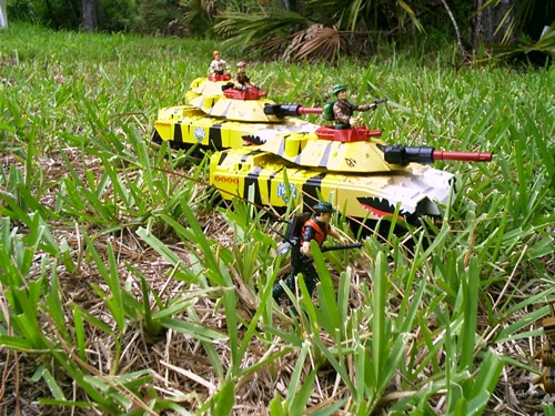 With the forces of Cobra and Python Patrol getting stronger and stronger, the Joe team had to react fast. To support the newest members of Tiger Force on their assault of the newly constructed Python headquarters, where ever it may be, Hawk had the MOBAT commissioned into the Tiger Force team. The Joe's oldest armored vehicle is still one of their most reliable and powerful. Retrofitted with turbine engines and an automated firing system, these new Tiger Bats have incredible "shoot on the move" capabilities. Python Patrol will have a bad day when these tanks find out where the snakes are hiding.