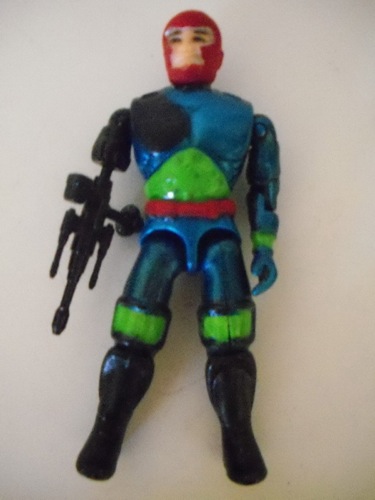 After I finished making the first version of Trap-Jaw, I thought that a Trap-Jaw without its accessory arm just didn't look right, so I edited his first filecard into getting him to lose his arm, and replacing it with a laser rifle arm with this second version.