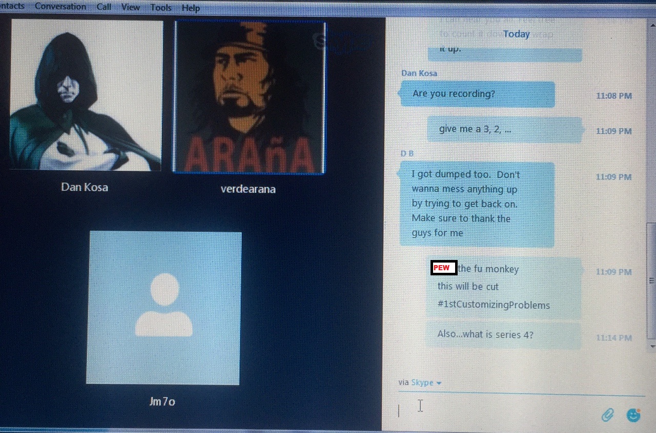 viewtopic.php?f=114&t=44513We started off with 6 people. As the night went along, Skype took us out horror movie style one by one, until it was just Erik and Dan with me listening and recording without a mic.