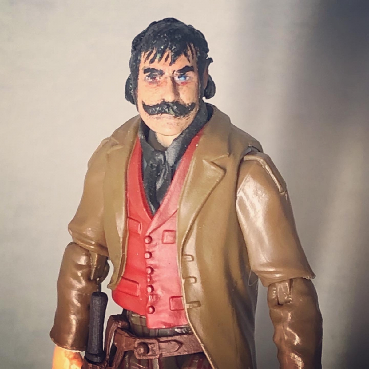 I’ve been working with the head for over a year, waiting for the right parts from DNL. Once arrived, I went straight to work. I had two different bodies worked up and couldn’t decide on one, so the figure now has two bodies. A little more work on the tan shirt one as the parts weren’t snapping together without a little dremeling. The last piece of the the puzzle was fulfilled via 3D printing a top hat, many thanks to alley viper elite for sending me several sizes to try out.