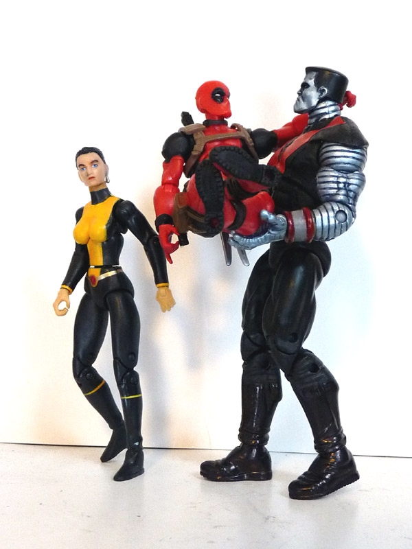 Colossus is the upper body and lower legs of the 90s-look MCU figure with upper legs off the comic pack unworthy Thor. Add black and red paint, and he's pretty close to the look from Deadpool 1 and 2.