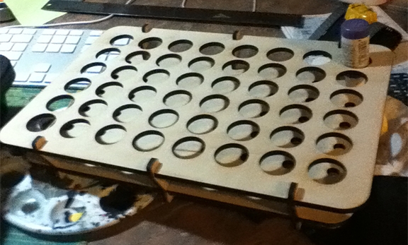 so I reached out to a local guy I knew that had a laser cutter, and had him make me some custom paint racks to fit the drawers ...