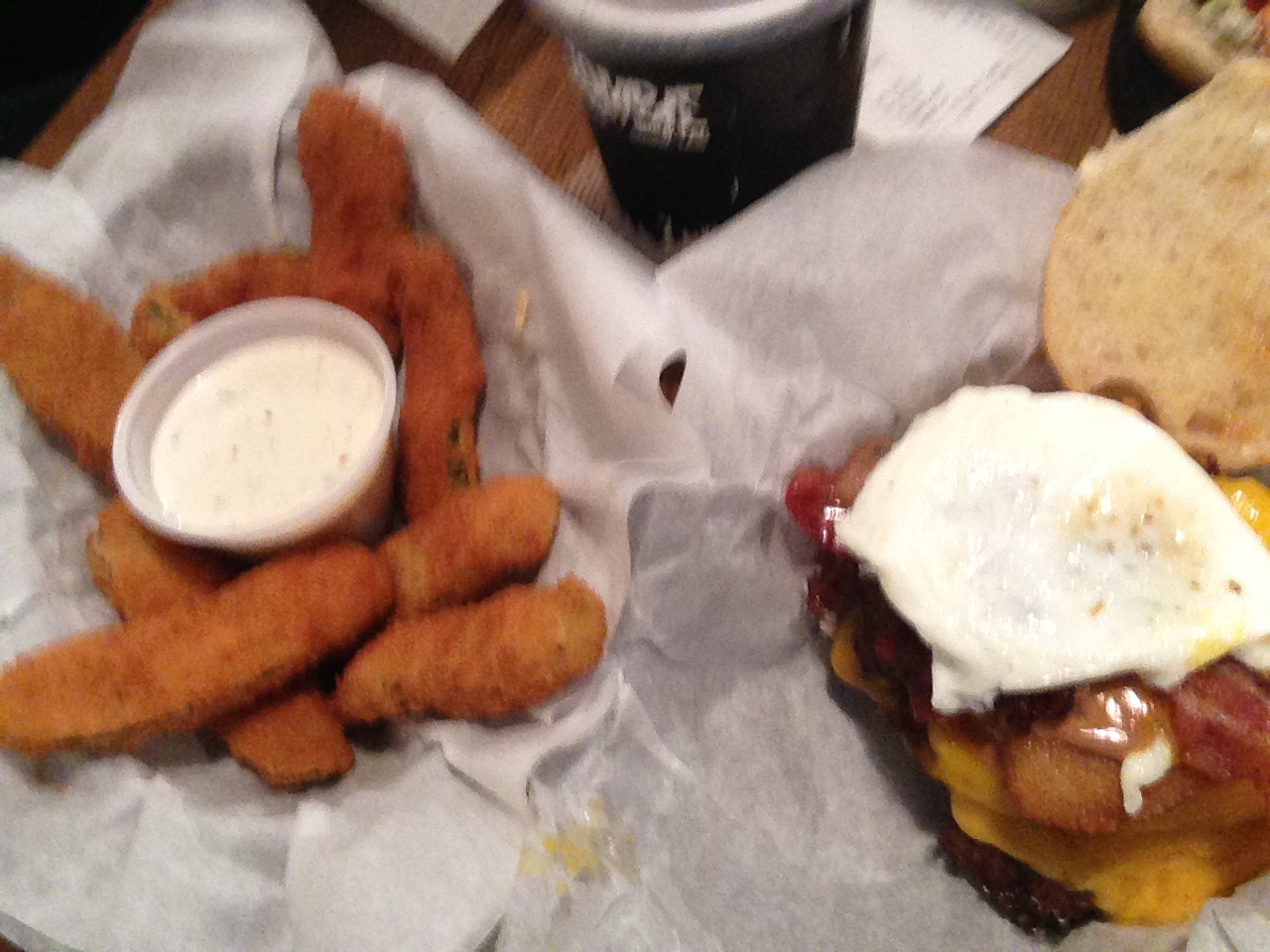 https://www.facebook.com/photo.php?fbid ... =1&theaterAnd if that doesn't sell you on the show itself, let me just end things with the way they ended Saturday night after the show, at Zombie Burger and a double tapped Dead Elvis Burger (2 beef patties, cheddar cheese, bacon, deep fried bananas with peanut butter, and an egg) with a side of fried pickles. I had to get it because I was honestly afraid of it. Face your greatest fears and all that. It was like eating an entire IHOP breakfast all at once. But all the food was good and worth the hype from everyone over the past year.