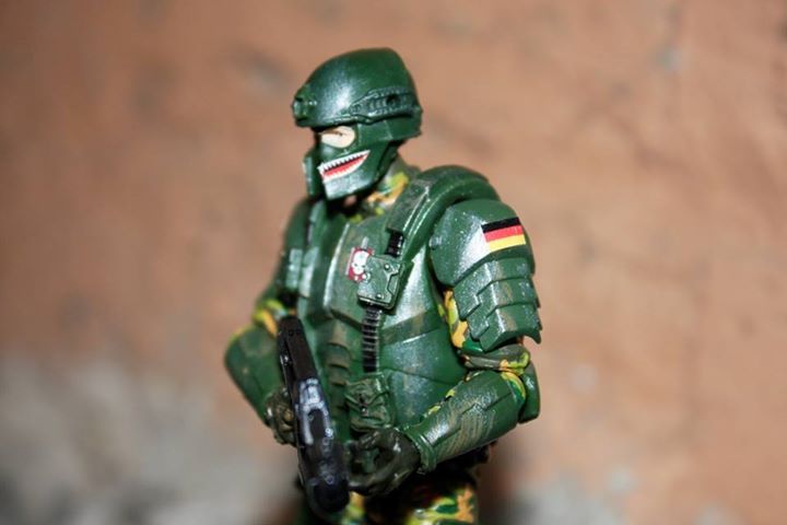 The first series of die-cut stickers for use ON 4 inch action figures are NOW available! Die-cut stickers from D&J Toys are just "peel and stick"...no water or cutting! Stickers are made out of a VERY thin film to allow for a realistic use on the figures (NOT "big & thick" material like is commonly used). The sheet has a wide variety of sticker styles: Country flags in "bright" and muted colors (US, UK, Germany, Brazil, Canada, Australia), unit patches, Marauder Task Force "Skull/Knife" logos, miniature beret shields, name badges...even "shark teeth" for use on helmets! The MTF sticker sheet allows you to take your detail custom work to a new level!