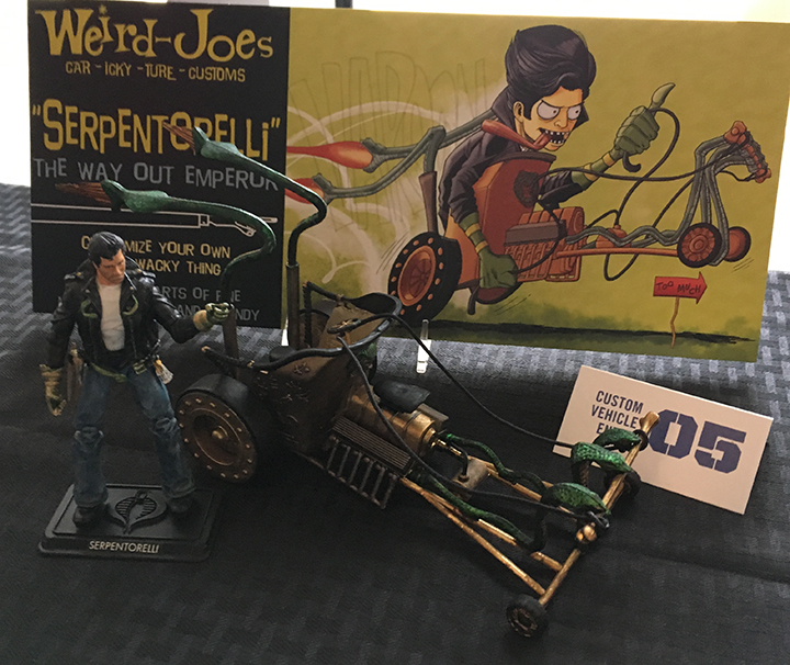 Here Bucky is checking out 2DARK2C's Fridge Joe Cart while helping HypnoHustler setup the customs display. 2DARK2C also sent a dozen metal cast pistols that we gave for the show raffle. Everyone was very impressed.