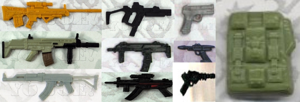 For Wild Weasel I went with Snake Eyes v1's uzi, Alley Viper II's machine pistol, Wild Weasel v4's backpack, Snake Eyes v3's uzi, and Wild Bill v5's pistol.